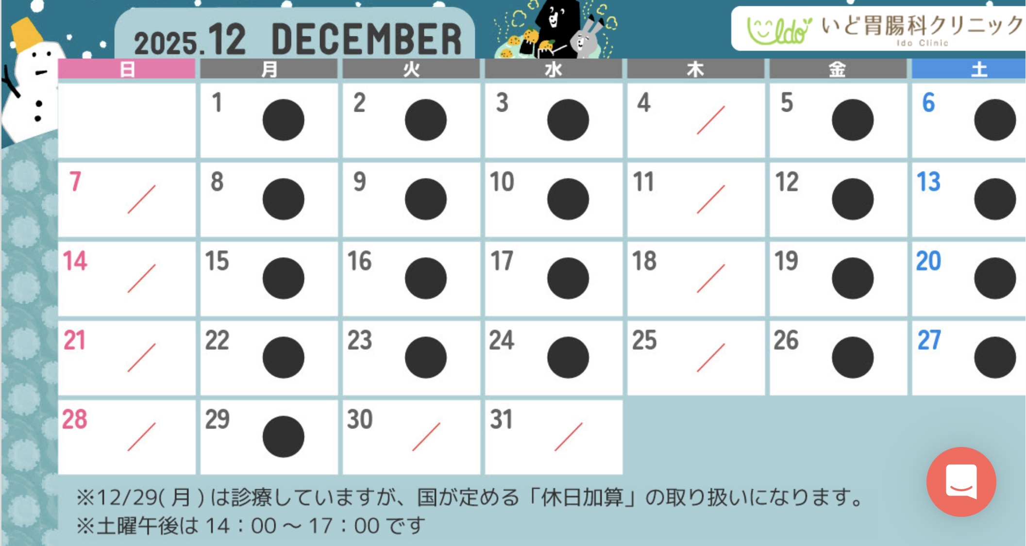 年末年始休診日のお知らせ