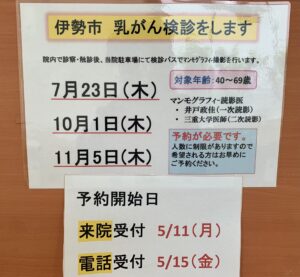 伊勢市の乳がん検診日が決まりました!